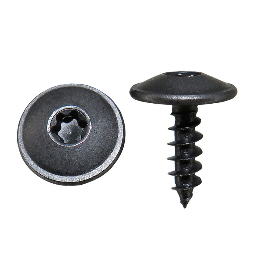 Die Gewinde verjüngen sich zur Spitze hin, sodass die Schraube beim Einbau der Schraube Gewinde in das Material formen kann.Torx-modifizierte Flachrundschrauben haben einen übergroßen Flanschkopf
